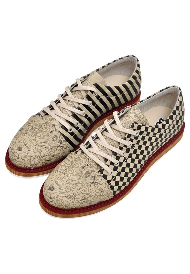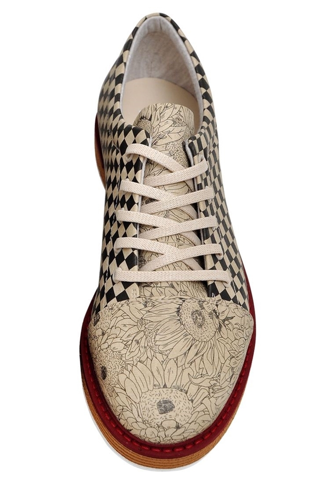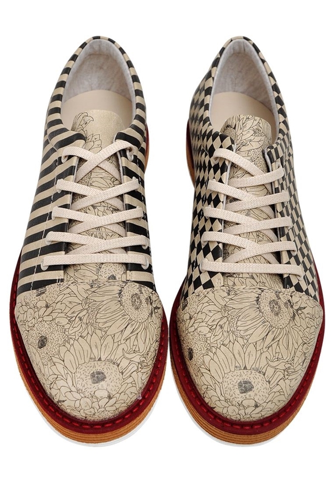 Handmade. Made of high quality synthetic leather. Printed with solvent free painting. 50% cotton 50% polyester beige inner lining. Three color eva outer sole. Polyester laces are 110 cm.