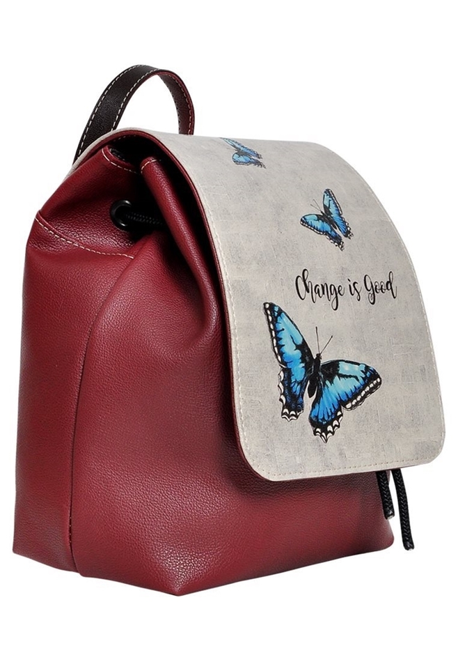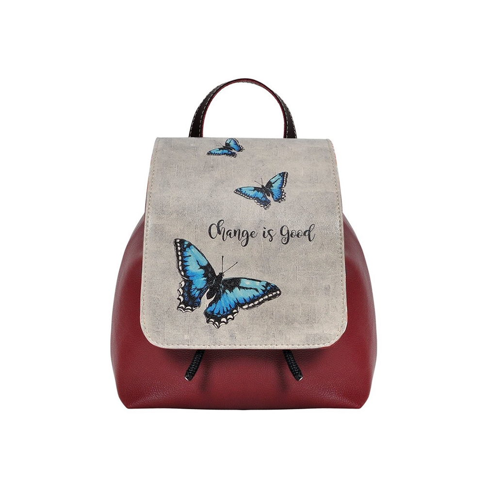 Handmade. PU/PVC synthetic leather. Water-based organic pigment ink and Oxford weave fabric used. 100% phthalate-free polyester fiber inner lining. Sewing yarn is Ecotex certificated and yarn size is Nm 50. Nikel free magnet, eyelet and clasps. 25 cmx30 cm.