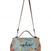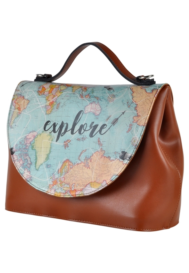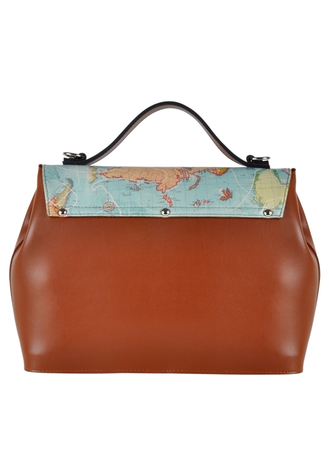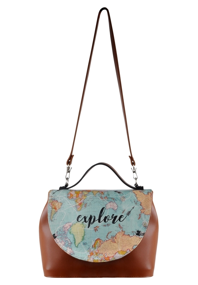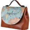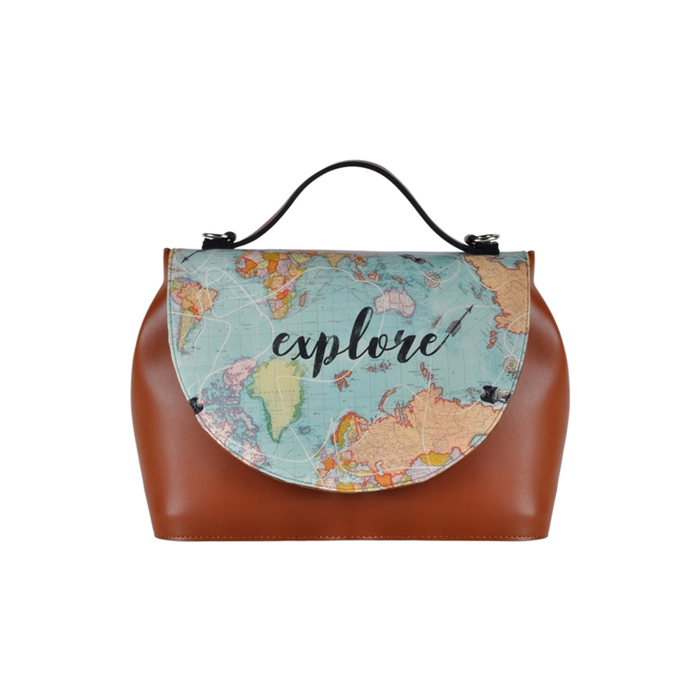 Handmade. Made of high quality polyurethane synthetic leather. The cover is digitally printed synthetic leather made of PVC. Shoulder straps with metal accents and with a comfortable handle grip. Inner lining is suede. Interior zipped pocket, safety lock under the cover. 31x24cm.