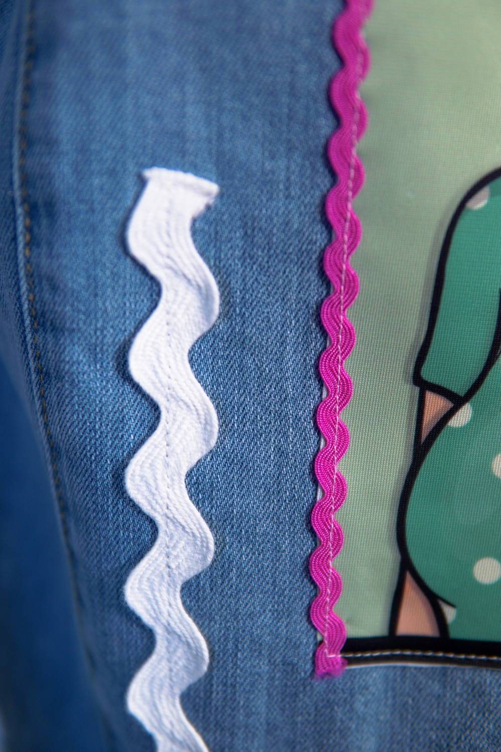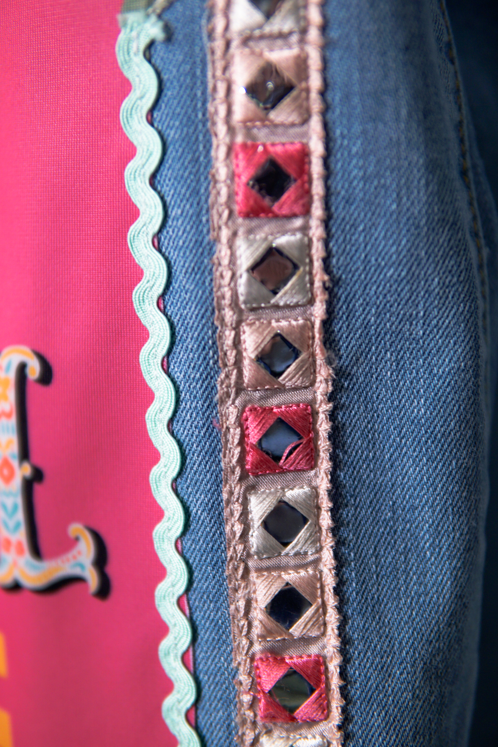 All patchworks are sewed on the jacket.