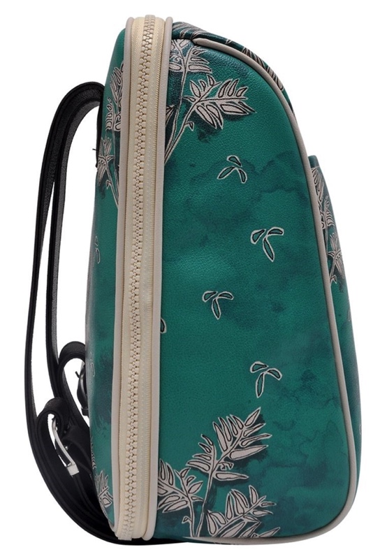 Handmade. PU/PVC synthetic leather. Water-based organic pigment print. Oxford weave fabric of 100 % phthalate-free polyester fiber inner lining. High quality nylon zipper type 10 (No nickel, lead and phthalate-free). 25 cmx30 cm.