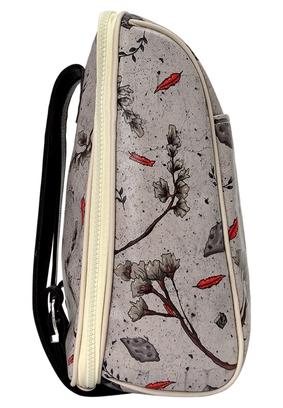Handmade. PU/PVC synthetic leather. Water-based organic pigment print. Oxford weave fabric of 100 % phthalate-free polyester fiber inner lining. High quality nylon zipper type 10 (No nickel, lead and phthalate-free). 25 cmx30 cm.