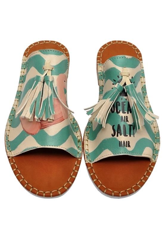 Handmade. Made of high quality synthetic leather. Printed with solvent free painting. Inner lining is synthetic leather. Thermoplastic sole is used.