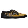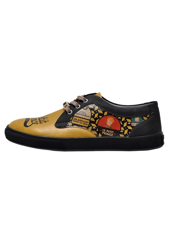 Handmade. Made of high quality synthetic leather. Printed with solvent free painting. Polyester inner lining. Thermoplastic sole is used. Hook and loop closure.